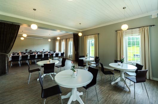Gildesalen har direkte inngang fra tunet, romslig garderobe og ekstra grupperom.