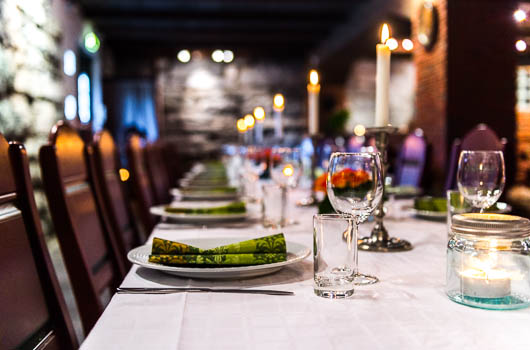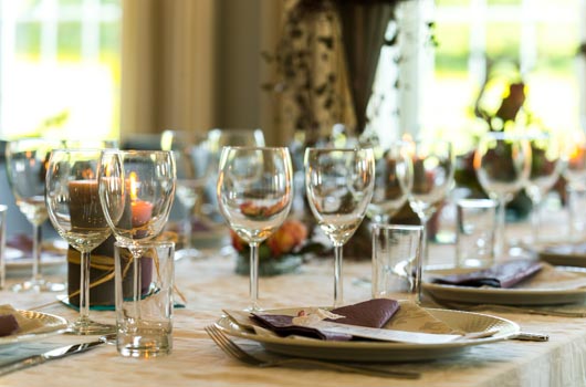 Leieprisene er inkl. servise, bestikk og rengjøring. Duker kan leies og det kan avtales dekking av bord.