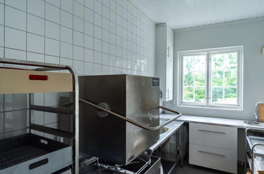 Våre kjøkken er ikke offentlig godkjent for tilberedning av mat til et stort antall gjester, men godt egnet til oppvarming og anretning av mat.